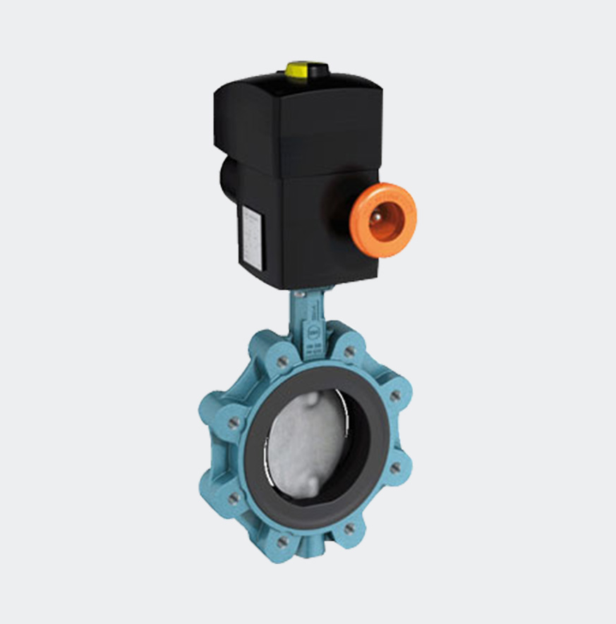 Lug type butterfly valves with threaded holes. This type enables the one-sided lugging of pipes.